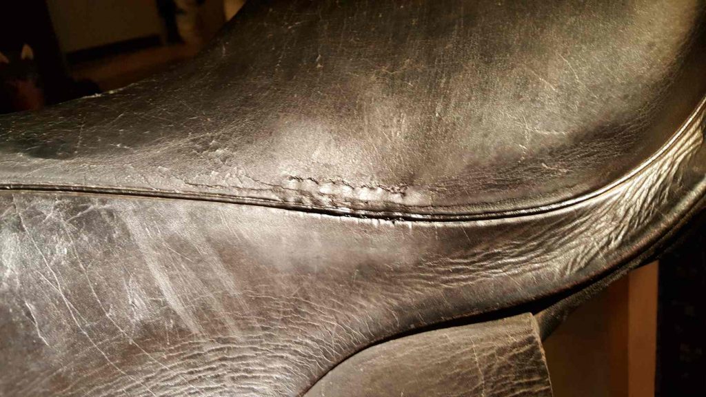 Bij een oud zadel kan een scheur redelijk onopvallend worden gerepareerd. Deze herstelling houdt ook heel erg goed en is niet voelbaar bij het rijden.