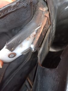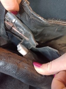 Naast het zadelpassen gebeuren er veel herstellingen. Natuurlijk aan paardengerief, maar ook aan andere lederen objecten.
